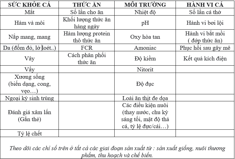 Các chỉ số phúc lợi cá mà người nuôi cần theo dõi trong suốt quá trình nuôi: