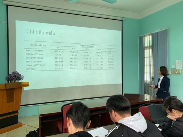 Ngày 12/12/2024, tại Hội trường Khoa Thủy sản, buổi seminar khoa học về chủ đề “Nâng cao miễn dịch ở ĐVTS” đã diễn ra với sự tham gia của các thành viên nhóm NCM Dinh dưỡng thức ăn và NTTS, các giảng viên và sinh viên chuyên ngành. Chương trình gồm hai bài trình bày mang tính ứng dụng cao trong lĩnh vực nuôi trồng thủy sản.