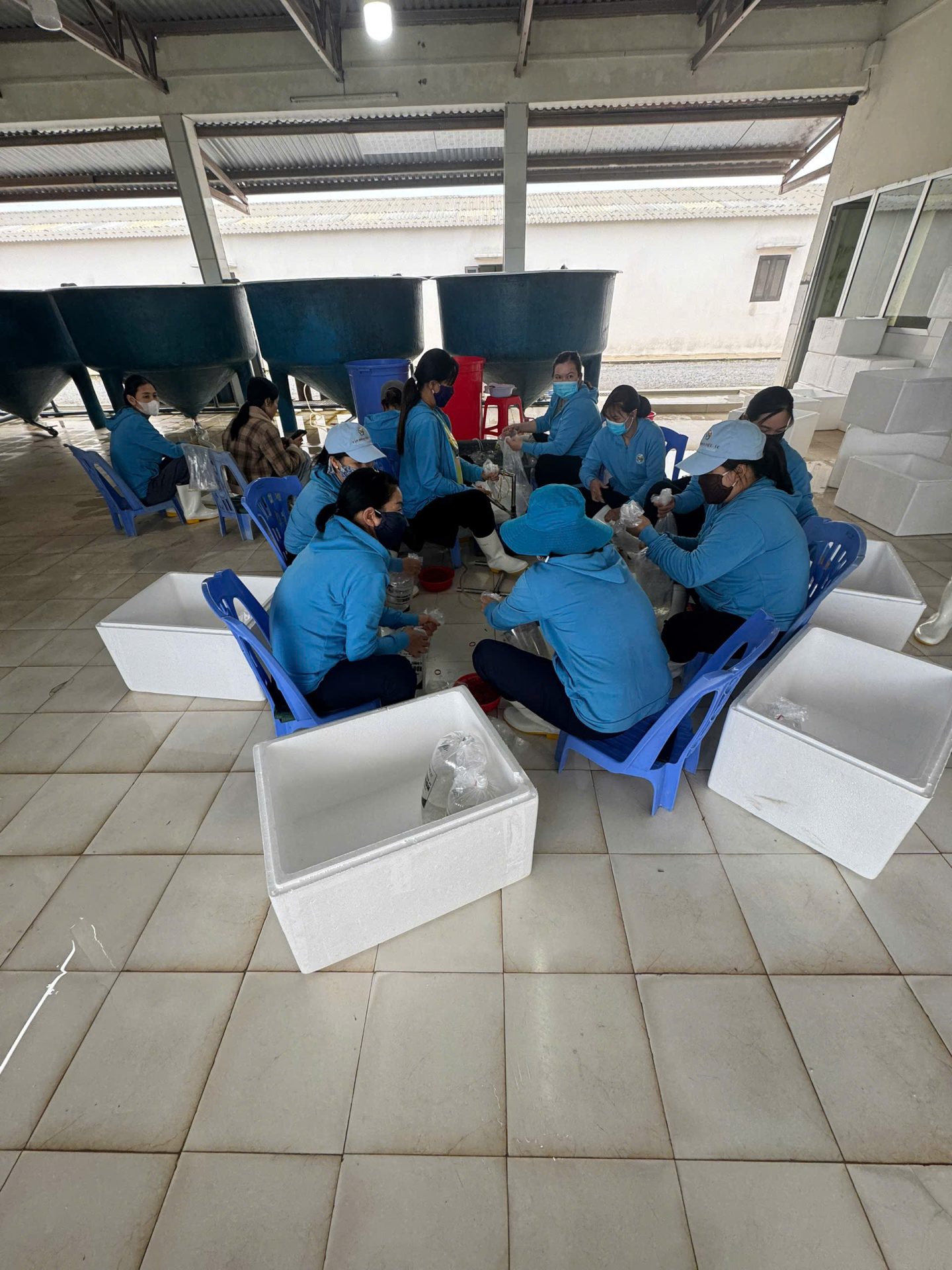 Trong thời gian thực tập nghề tại đây, sinh viên Khoa Thuỷ sản đã có cơ hội tiếp cận trực tiếp với môi trường sản xuất chuyên nghiệp và hiện đại. Các em được tham gia tìm hiểu quy trình sản xuất tôm giống, kỹ thuật nuôi tôm công nghệ cao, hệ thống xử lý nước tuần hoàn, cũng như quy trình kiểm soát dịch bệnh trong trại giống. Qua đó, những kiến thức lý thuyết được học trên giảng đường được củng cố và vận dụng vào thực tiễn sản xuất. Không chỉ dừng lại ở việc quan sát, nhiều sinh viên còn trực tiếp tham gia vào các công đoạn kỹ thuật như kiểm tra chất lượng con giống, theo dõi các chỉ tiêu môi trường nuôi, hỗ trợ chăm sóc và quản lý đàn tôm trong hệ thống nuôi công nghệ cao. Đây là những trải nghiệm quý báu giúp sinh viên rèn luyện kỹ năng nghề nghiệp, tác phong làm việc chuyên nghiệp và tư duy khoa học trong sản xuất thủy sản.